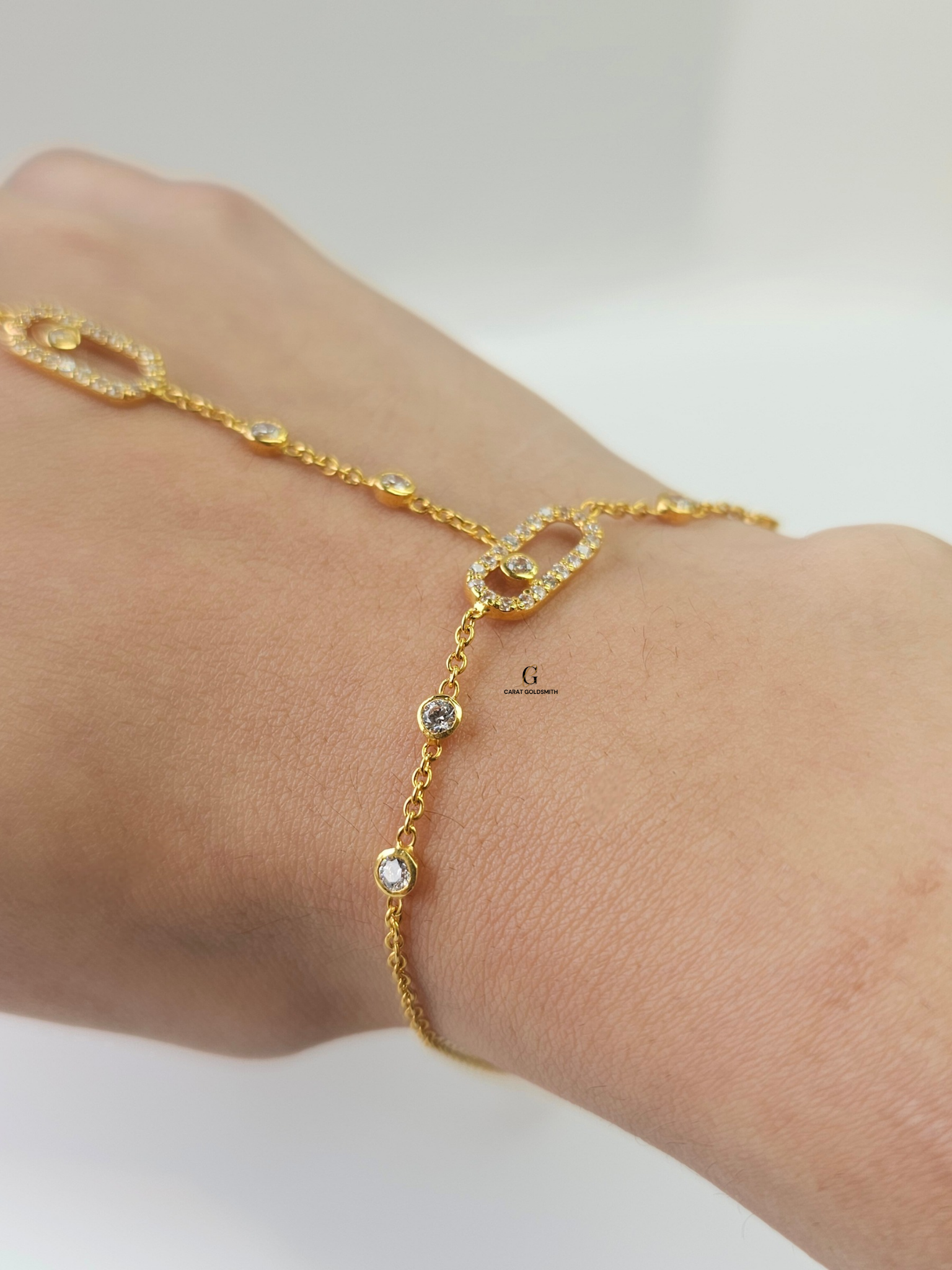 Our 22ct Cubic Zirconia Oval Stone Hand Chain creates a stunning and delicate layered look for any occasion. Layer it with rings and other bracelets and you get an elaborate look that is guaranteed to sparkle and get all the compliments.