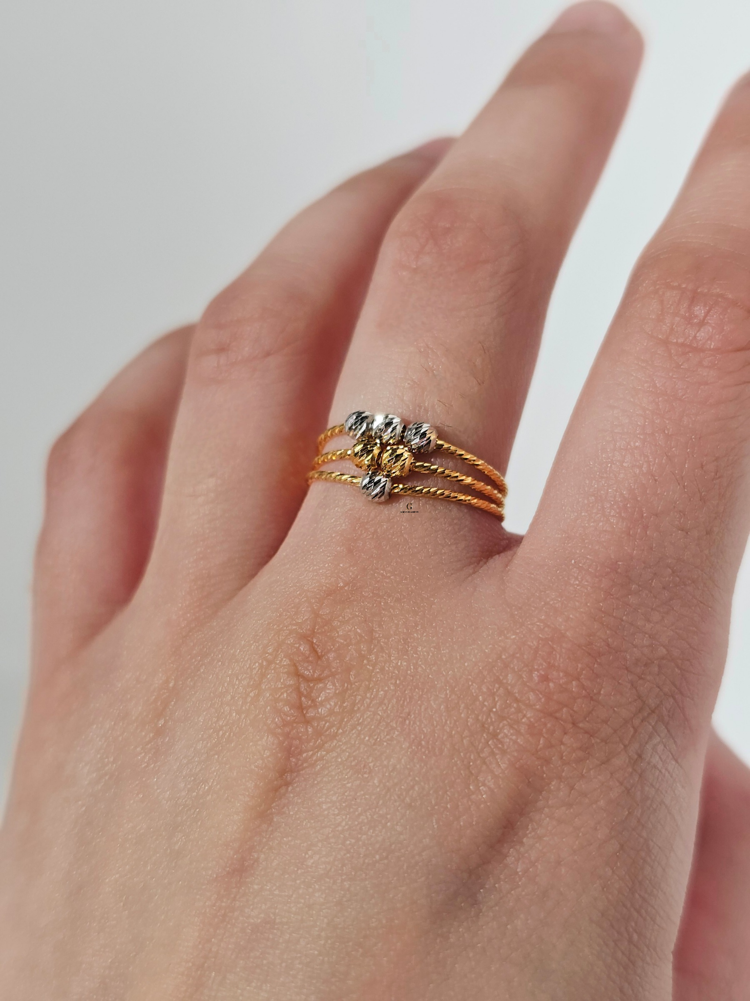 TWO TONE TRIANGLE BEADED RING