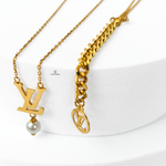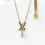 INITIAL AND PEARL DROP NECKLACE
